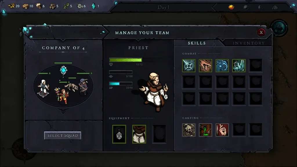 Você pode recrutar heróis de classes clássicas, como Lutador, Caçador, Arcanista, Druida e Sacerdote, cada uma com suas próprias habilidades e companheiros únicos. As habilidades em questão podem ser ativas e passivas únicas e que contam com o espaço para o jogador criar as melhores combinações possíveis. Por sinal, o próprio Cristal Terrestre pode desbloquear habilidades, mas é importante lembrar que para evoluir, a morte será o caminho.
