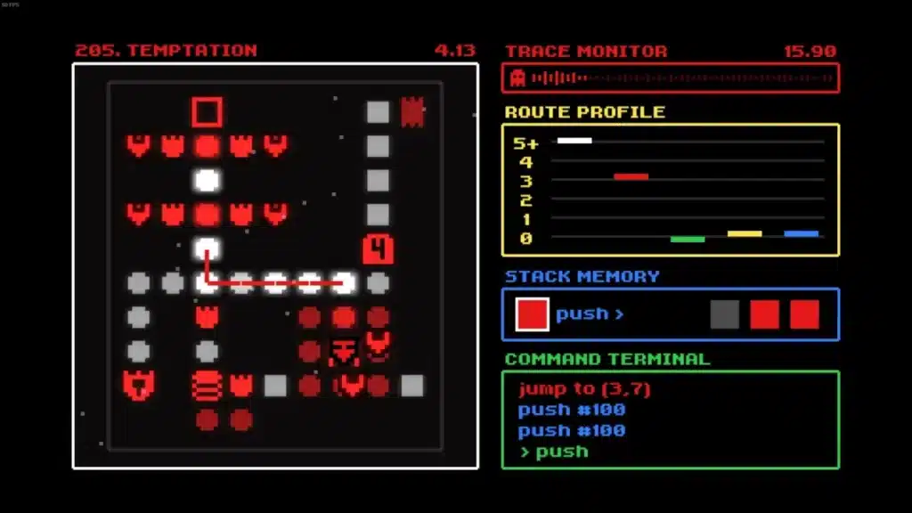 Seu objetivo em Nullptr é a infiltração em servidores de megacorporações visando coleta de dados valiosos. É necessário resolver os quebra-cabeças em uma corrida contra o tempo, antes que você seja bloqueado pelo monitor de rastreamento. São cerca de 125 fases, ou servidores, para testar suas habilidades em puzzles e, também, sua criatividade.